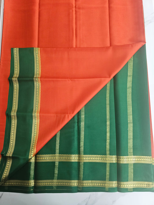 ORANGE WITH GREEN - PURE MYSORE CREPE SILK